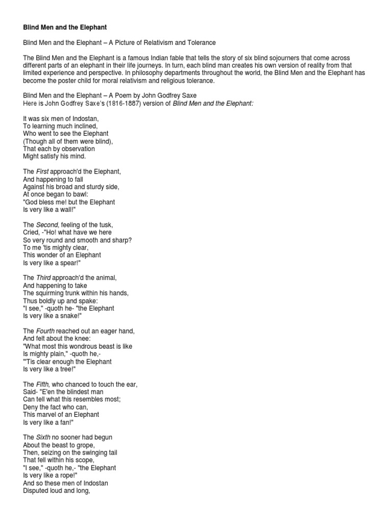 Blind Men And The Elephant Elephant Visual Impairment